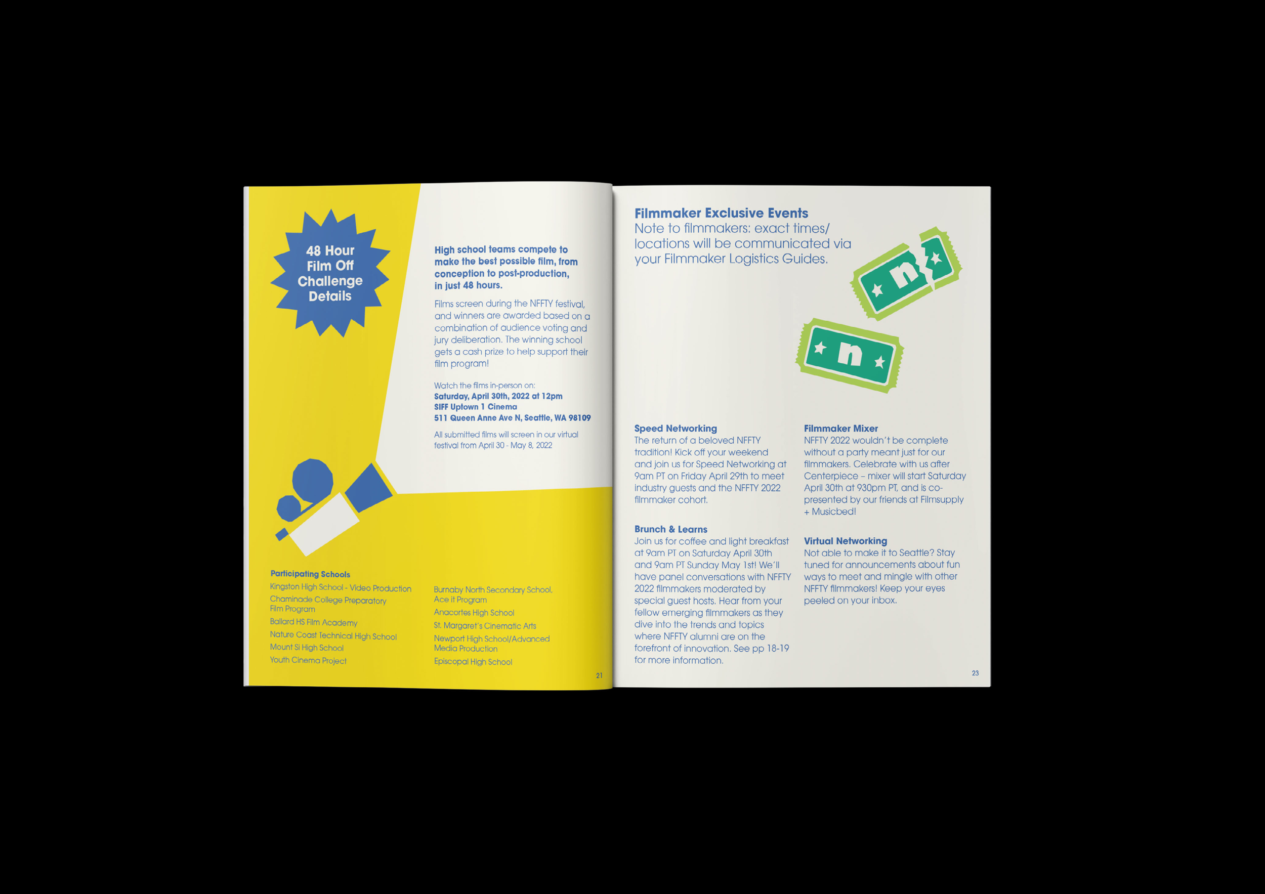 NFFTY is the world’s largest film festival for emerging filmmakers. In collaboration with Slash Backslash, I created the identity for their 15th festival edition in 2022. After two years of being forced online by the pandemic, 2022 was a return to their in-person format. Inspired by this we created a tongue-in-cheek identity that celebrated the least appreciated part of the movie theater experience – the ambient sounds of other moviegoers.